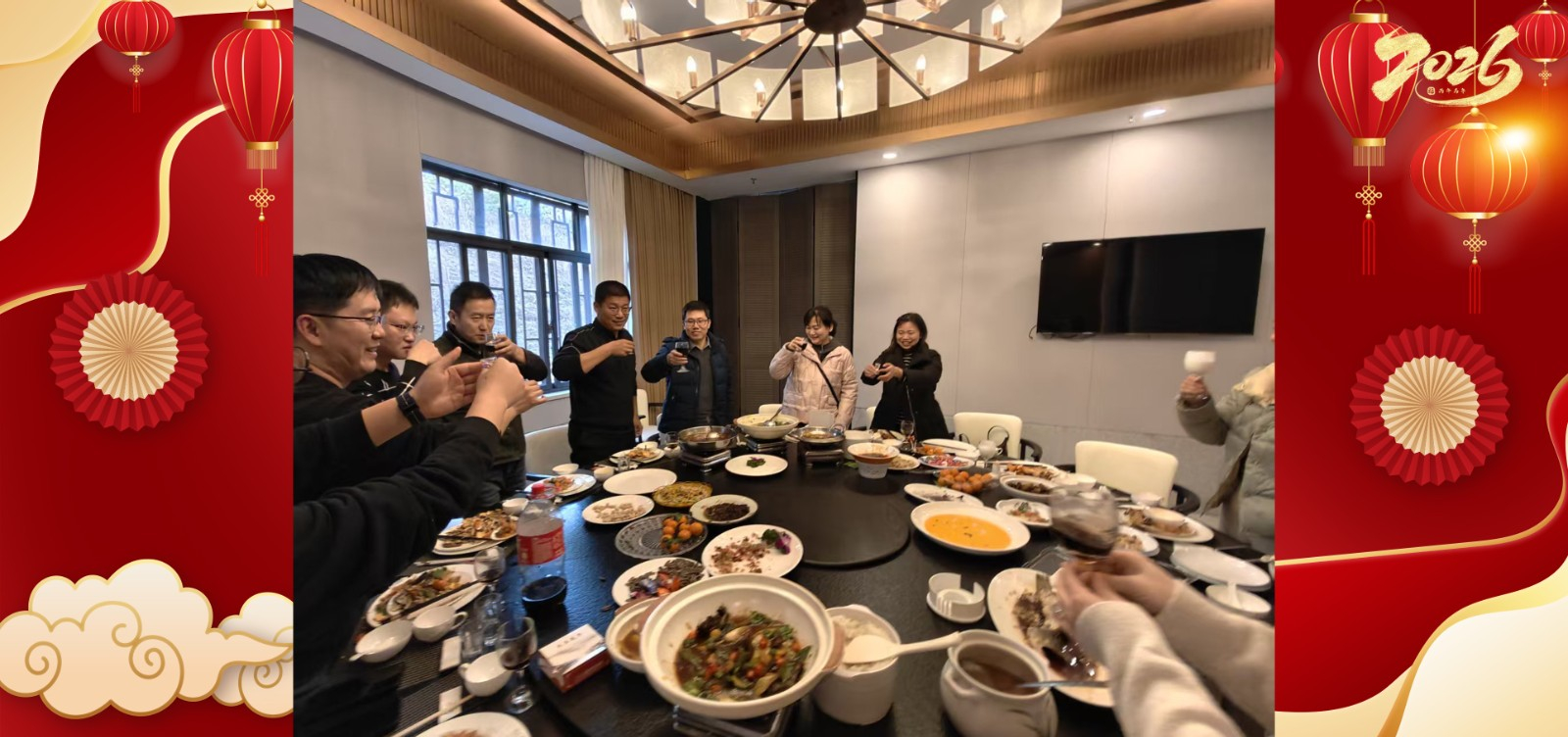 中午时分,“团队年夜饭”温馨开席。大家共同举杯,感恩过去一年的耕耘与收获,寄语充满希望的新征程。餐桌上交流热烈,情谊融融,洋溢着大家庭的温暖与喜悦。